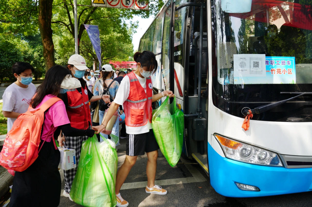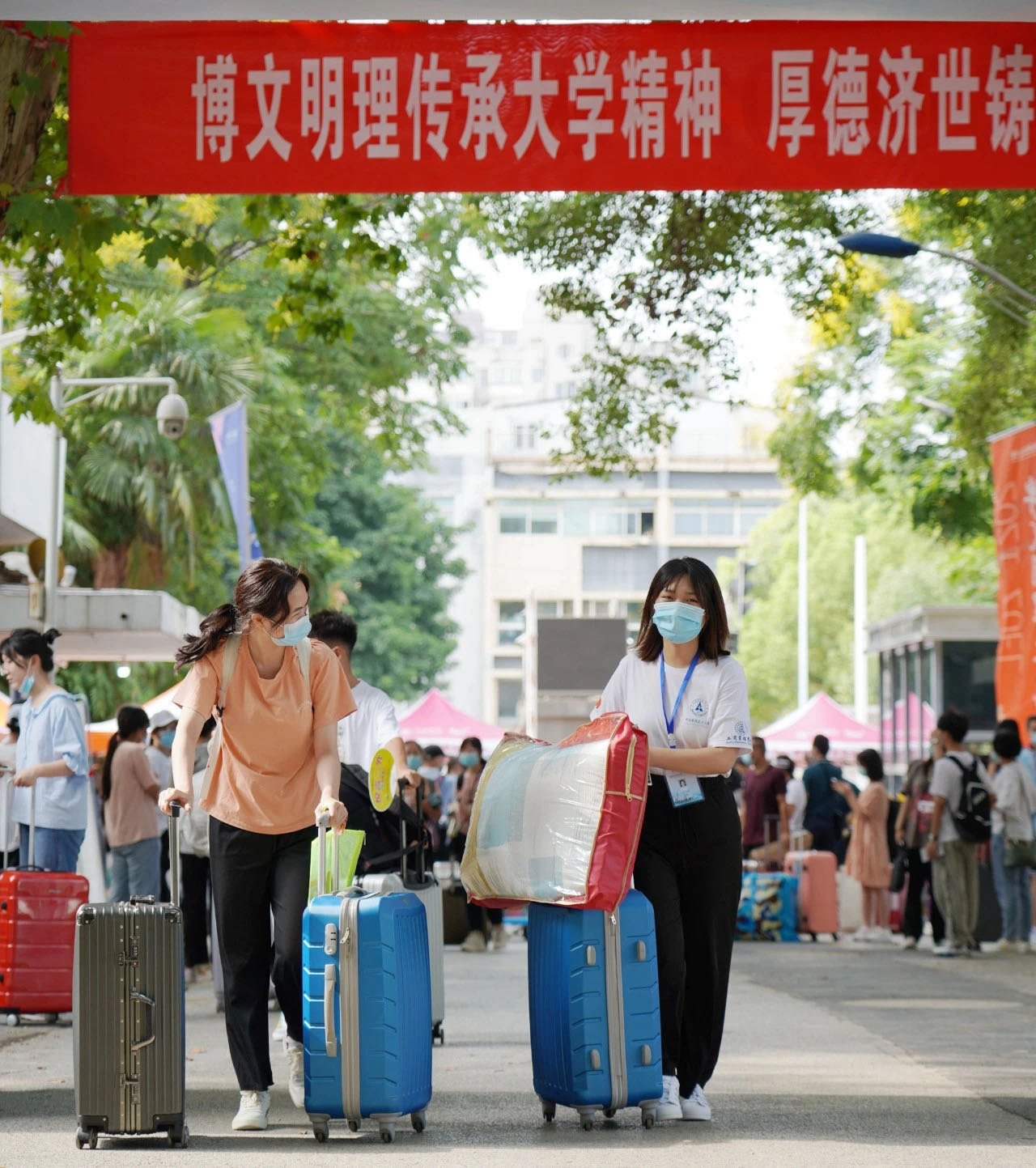 268名校内教职工下沉党员、700余名学生志愿者参与迎新,为新生提供周全细致的服务。后勤保障部和保卫部把大客车、电瓶车等各类车辆都集中调用起来,帮助同学们第一时间将行李运送到宿舍。