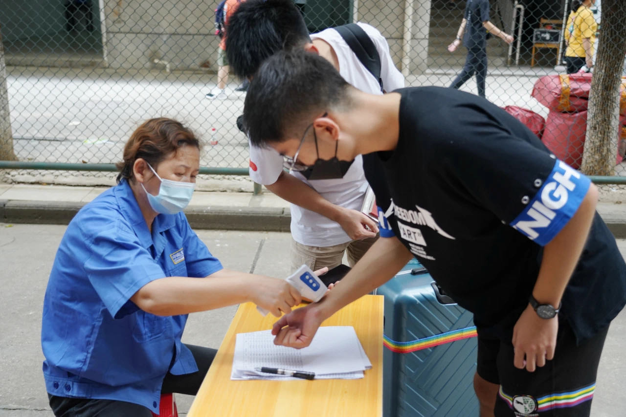 因为疫情防控要求,新生需要在入校时手持录取通知书完成出示防疫健康信息码、绿色行程卡、扫码登记、无感测温等环节后方可进校。家长需携带入校申请表和身份证方可入校。
