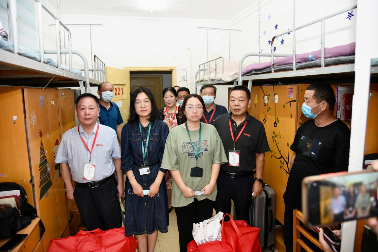“你们从哪里来的?”“不转高铁可以到武汉吗?”“作为武汉人,你要当好东道主。”校领导一行来到学生宿舍,查看宿舍环境,慰问家庭困难学生和家长,与大家合影留念。在南湖校区中区7栋、环湖5栋、首义校区26栋等宿舍,栾永玉、杨灿明为哲学院、法学院、经济学院、公共管理学院等家庭困难学生赠送励志书籍、生活用品暖心大礼包,并勉励他们好好学习,争做担当民族复兴大任的时代新人。校领导在查看宿舍时提出:“要多鼓励高年级学生和志愿者在迎新之际到新生宿舍开展志愿服务。”