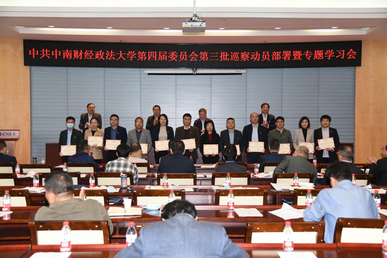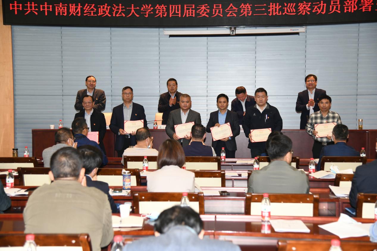 校党委副书记陈明宣读了学校党委关于巡察组组长授权任职及任务分工的决定。出席会议的校领导为党委巡察组组长、副组长颁授任命书。