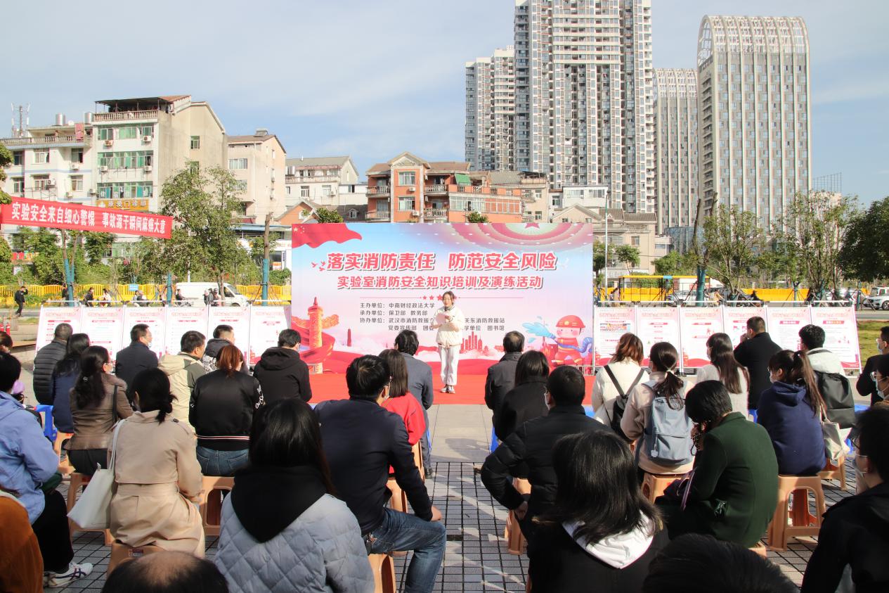 新闻网讯(通讯员 向雪莲 廖曦 摄影 彭佳)为进一步增强师生消防安全意识,提升应急救援能力,深入推进“119消防宣传月”活动,11月9日上午,学校联合武汉市消防救援支队开展了以“落实消防责任,防范安全风险”为主题的实验室消防安全知识培训及演练活动。保卫部、教务部、党委宣传部、团委等部门责任人,各学院实验室负责人、实验员及学生代表参加了此次活动。