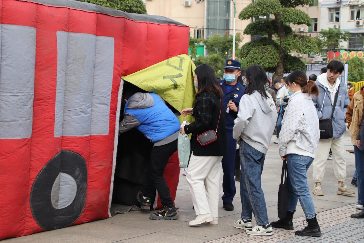 活动第二部分是在五羊广场进行实验室消防安全现场演练,主要包括消防器材展示、逃生敞篷体验、灭火器材体验、消防知识有奖问答、现场消防安全知识答疑等五方面内容。