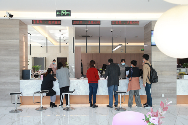 ▲大厅前台设接待人员答疑解惑