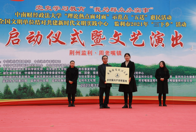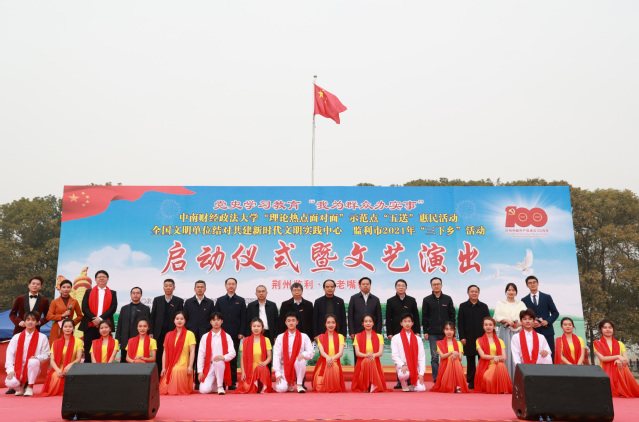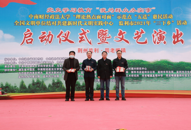新闻网讯(记者 彭佳)根据党中央统一部署和省委工作安排,按照党史学习教育“我为群众办实事”要求和省委宣传部、省委讲师团《关于在全省“理论热点面对面”示范点开展“五送”惠民活动的通知》精神,结合我校实际,12月10日我校师生赴监利市周老嘴镇直荀初级中学开展“理论热点面对面”示范点党史学习教育“送理论、送法律、送技术、送文化、送致富信息”惠民活动。省委讲师团一级调研员胡秋春,米兰电竞·(中国区)副校长邹进文,校党委常委、党委宣传部部长周巍,监利市委副书记、政协主席、政法委书记廖和平,监利市委常委、宣传部部长、市总工会主席李锋、我校相关部门负责人和师生以及监利市相关部门负责人参加启动仪式暨文艺演出,并进行校地座谈。