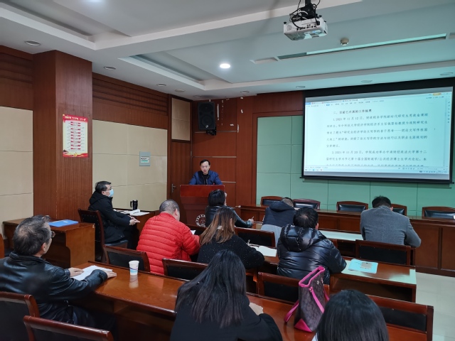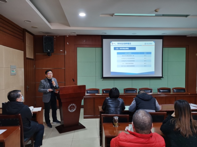 副院长魏福成以“本科教育现状、问题与设想”为题,分别介绍了本科生培养情况、教学资源与教学平台建设运行、本科教育教学存在的问题,并从课程团队建设、课程研讨、课程深度难度、新文科教育、考试考核方法、课程教材更新、学生论文指导、专题学术讲座、学科竞赛培训等多个方面提出了具体的措施。