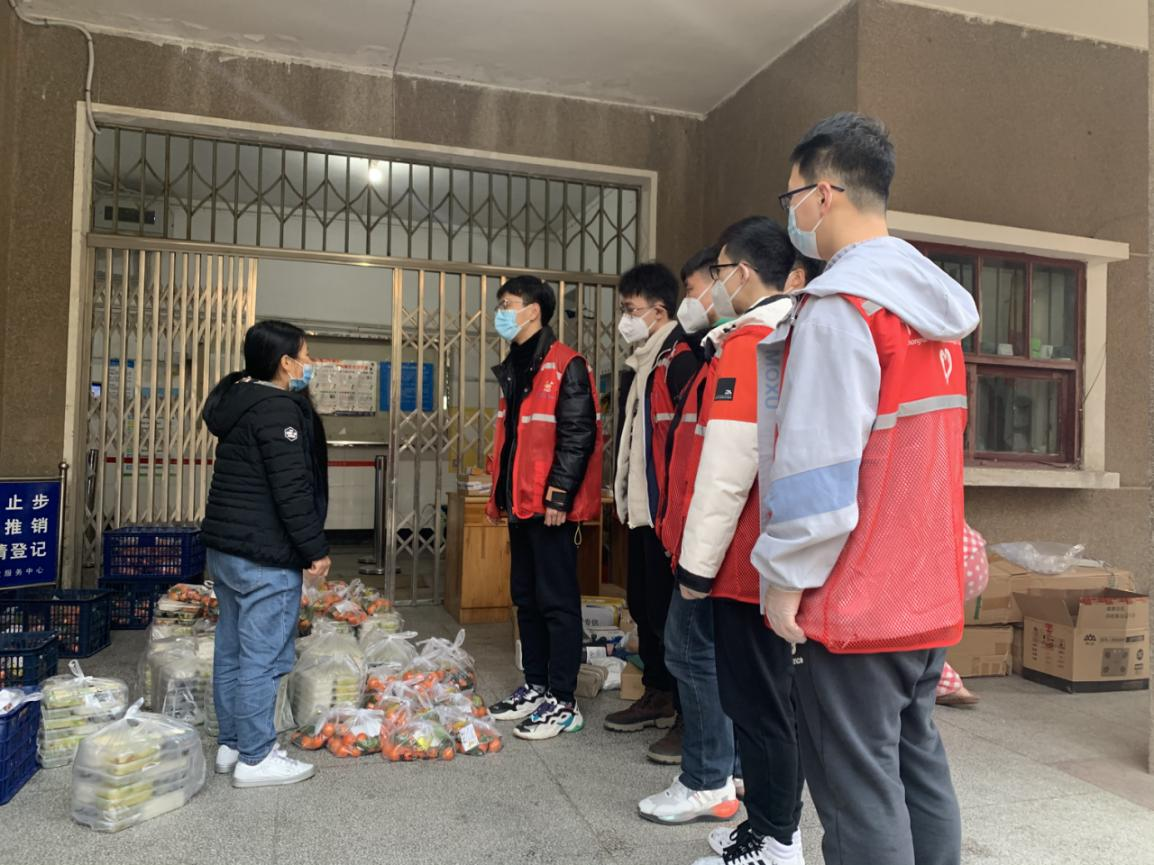 辅导员徐金花在封控楼栋组织物资分发