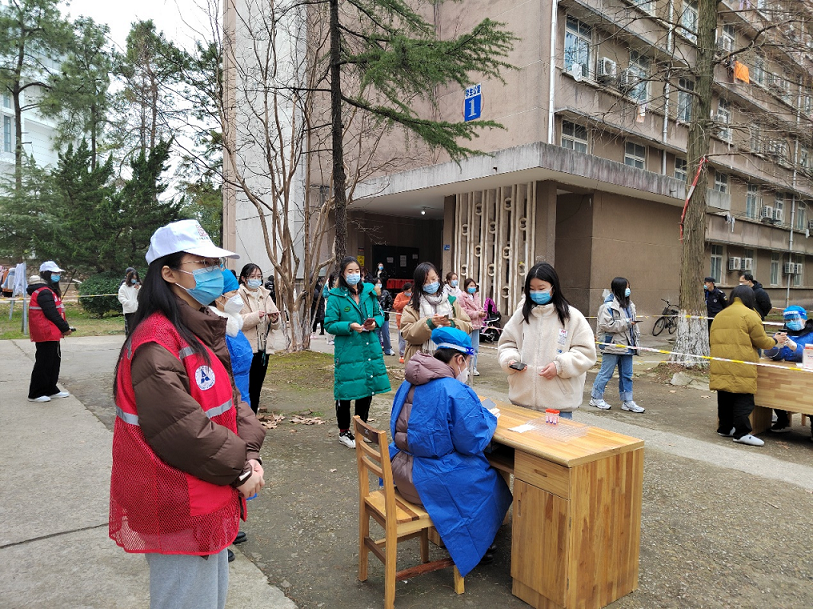 党委组织部及时成立由20名副处职党员干部组成的联系南湖社区工作队和应急突击队,参加社区管理和校园防疫工作;人事部组建教职工志愿服务队协助流调排查、食堂分餐、转运等工作;党委学生工作部、党委研究生工作部组建楼内、楼外学生志愿服务队,有序安排学生的信息录入、核酸采样、分餐、被隔离学生的课程信息统计等工作。