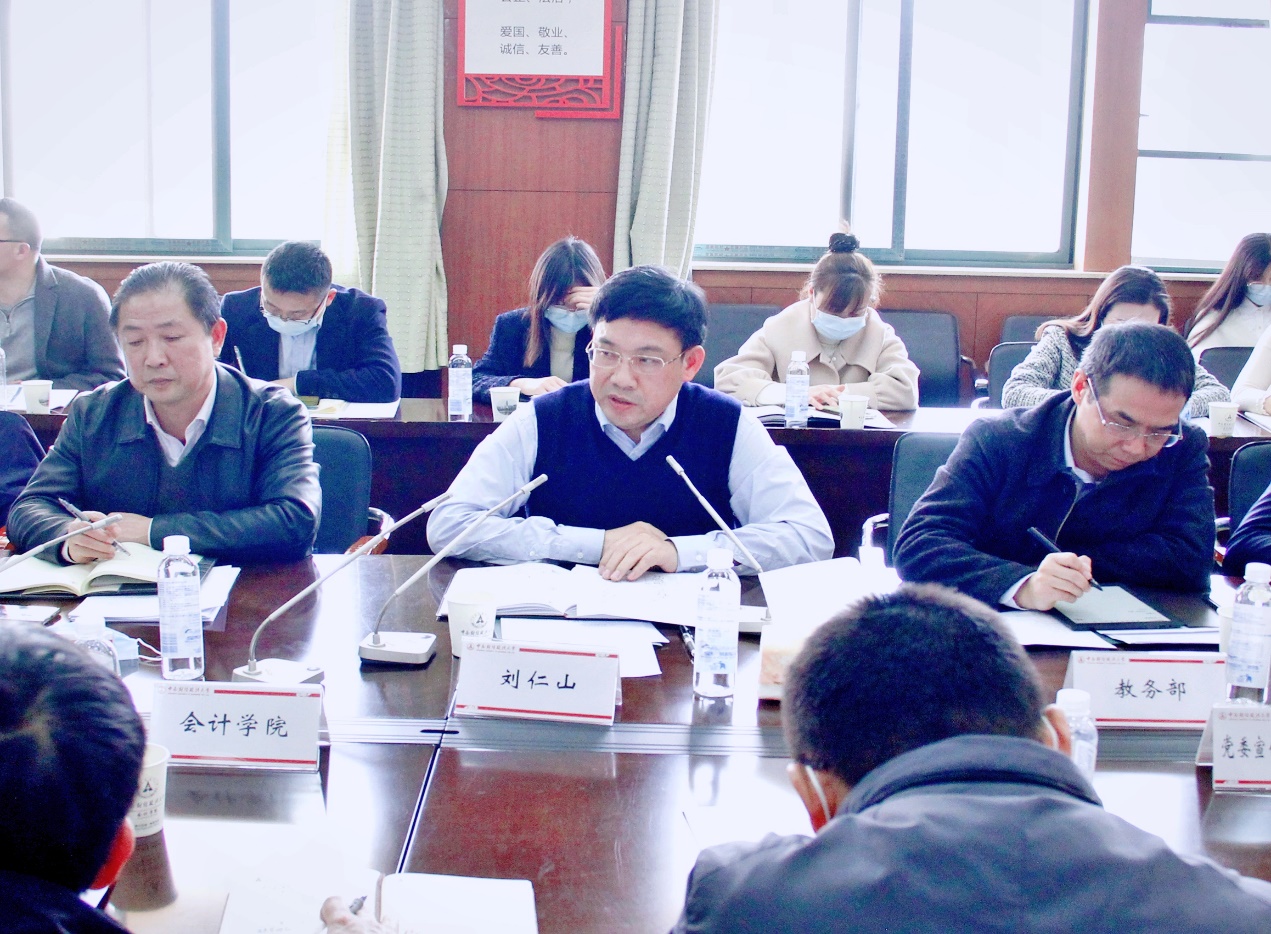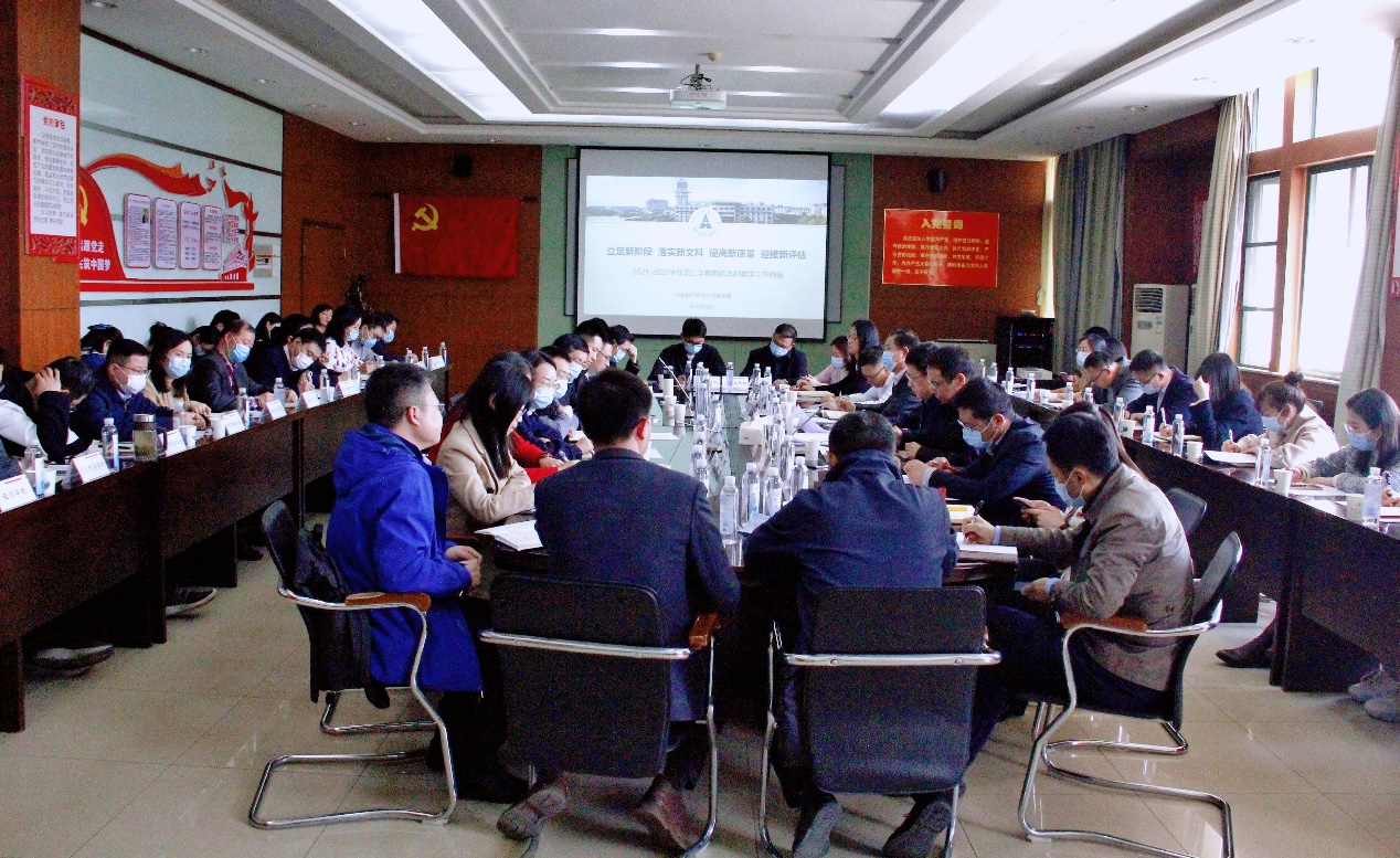 新闻网讯(通讯员 王颖 林孟 摄影 付洪深)3月9日下午,学校在文泉楼南401会议室召开2021-2022学年第二学期期初本科教学工作例会。会议由校党委常委、副校长刘仁山主持,相关职能部门负责人、各教学单位教学副院长(副主任)及教学秘书、教务部负责人和科室负责人参加会议。
