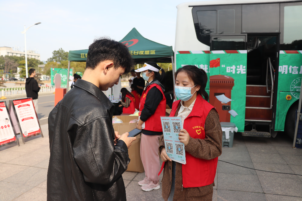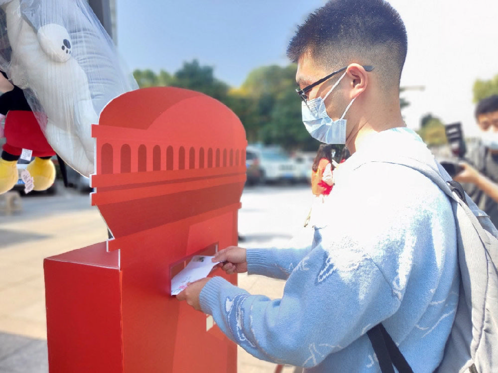 完成献血的同学,可领取血液中心定制的明信片及信封。同学们在明信片上写好寄语,将明信片投递至专现场的“时光信箱”,“寄给”未来的自己。写好的明信片和信件统一放进“移动式邮箱”——献血车带回至血液中心统一封存保管,待半年后开启,统一寄出。届时,同学们将收到半年前写给自己的寄语,或某个心愿,或对某个人的思念,也或许是某个目标。
