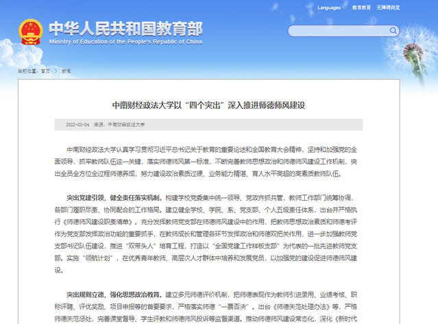 教育部官网报道学校深入推进师德师风教育