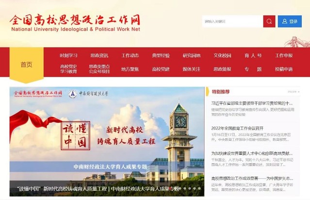 全国高校思想政治工作网首页推介“‘读懂中国’新时代高校铸魂育人质量工程”