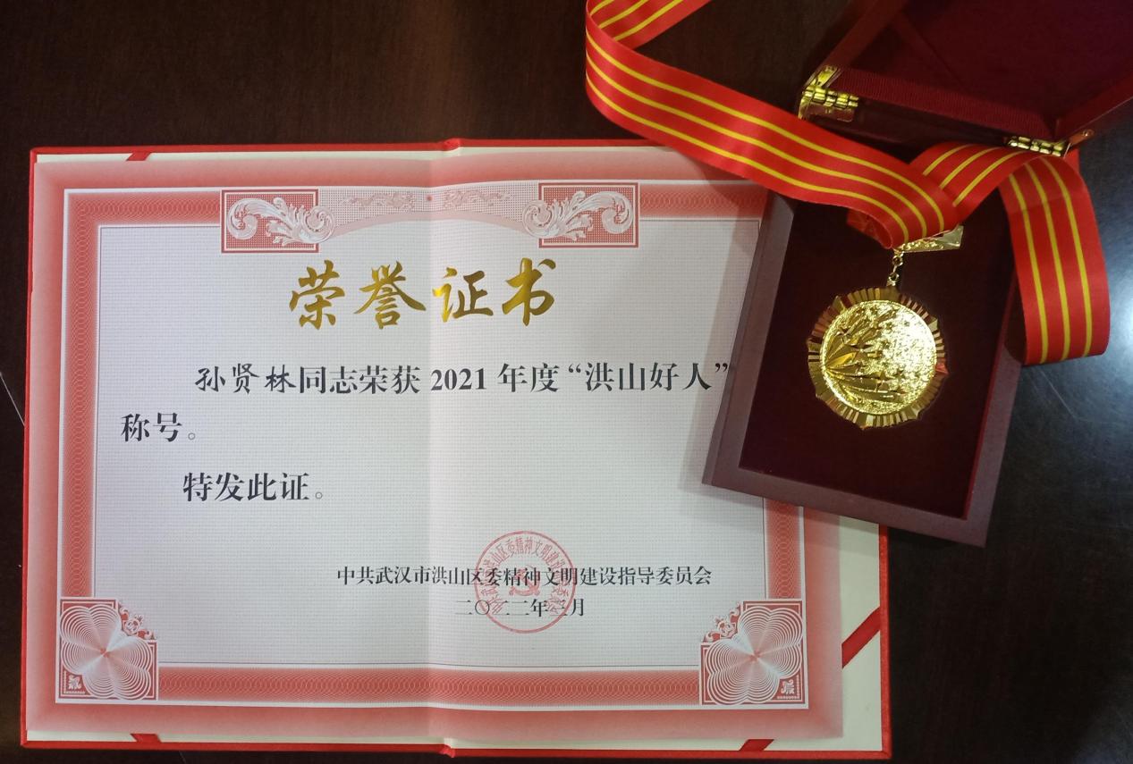 新闻网讯(通讯员 畅雅莉)近日,中共武汉市洪山区委精神文明建设指导委员会为我校会计学院孙贤林教授颁发了2021年度“洪山好人”荣誉证书,孙贤林教授荣获“助人为乐好人”荣誉称号。
