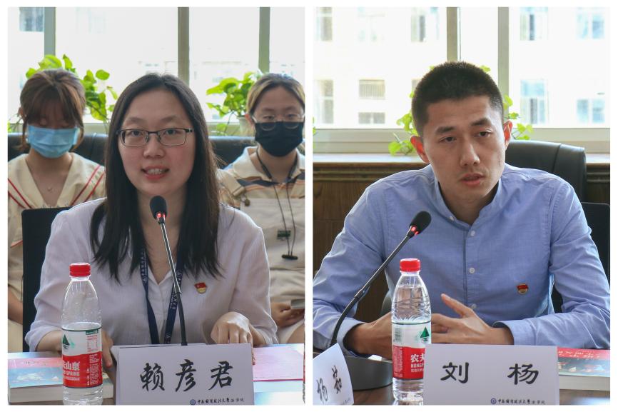 青年教师代表赖彦君在发言中认为,老师作为学生的指导者、引路人,应兼具专业水平与德行修养,以学生兴趣传授学识、引导信仰,把教书育人与自我修养相结合,以德立身、以德立学、以德施教。刘杨老师指出,青年的奋斗岁月与国家腾飞时期契合,青年应当将目光着眼于国家发展洪流,以扎实的专业知识铸就实干业绩,拂去思想的焦虑与浮华,真正与国家民族同呼吸共命运。