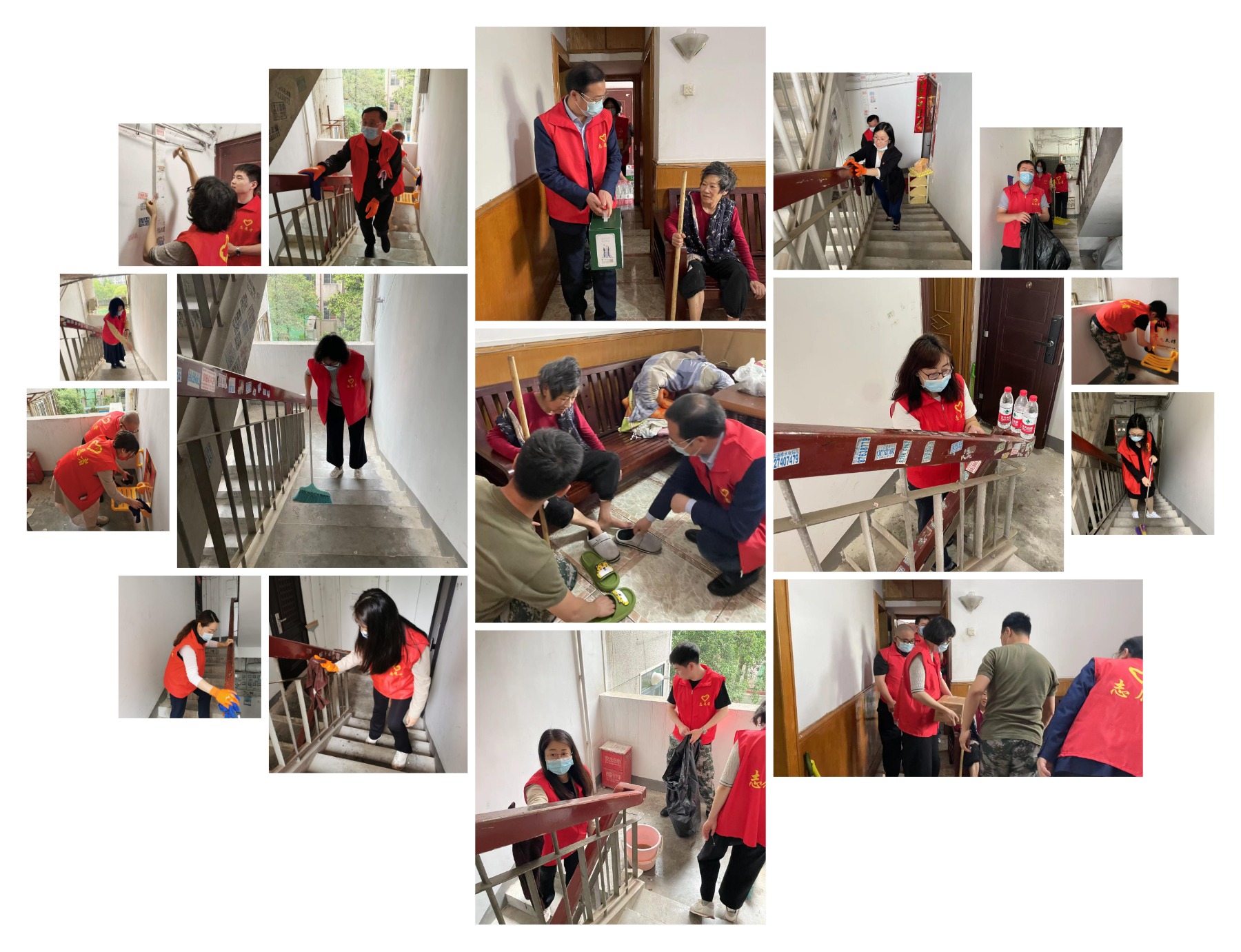 在理论学习结束后,学生工作部党支部还组织师生党员们一起下沉南湖社区,生活经验丰富的老师们带领着同学们擦楼梯扶手、打扫楼梯台阶、清理“牛皮癣”小广告、检查灭火器。随后,大家还一起走访慰问独居老人杨婆婆,给老人送去牛奶、矿泉水、拖鞋等生活必需品,关心老人身心健康,帮助老人打扫卫生,解决生活上的实际困难。