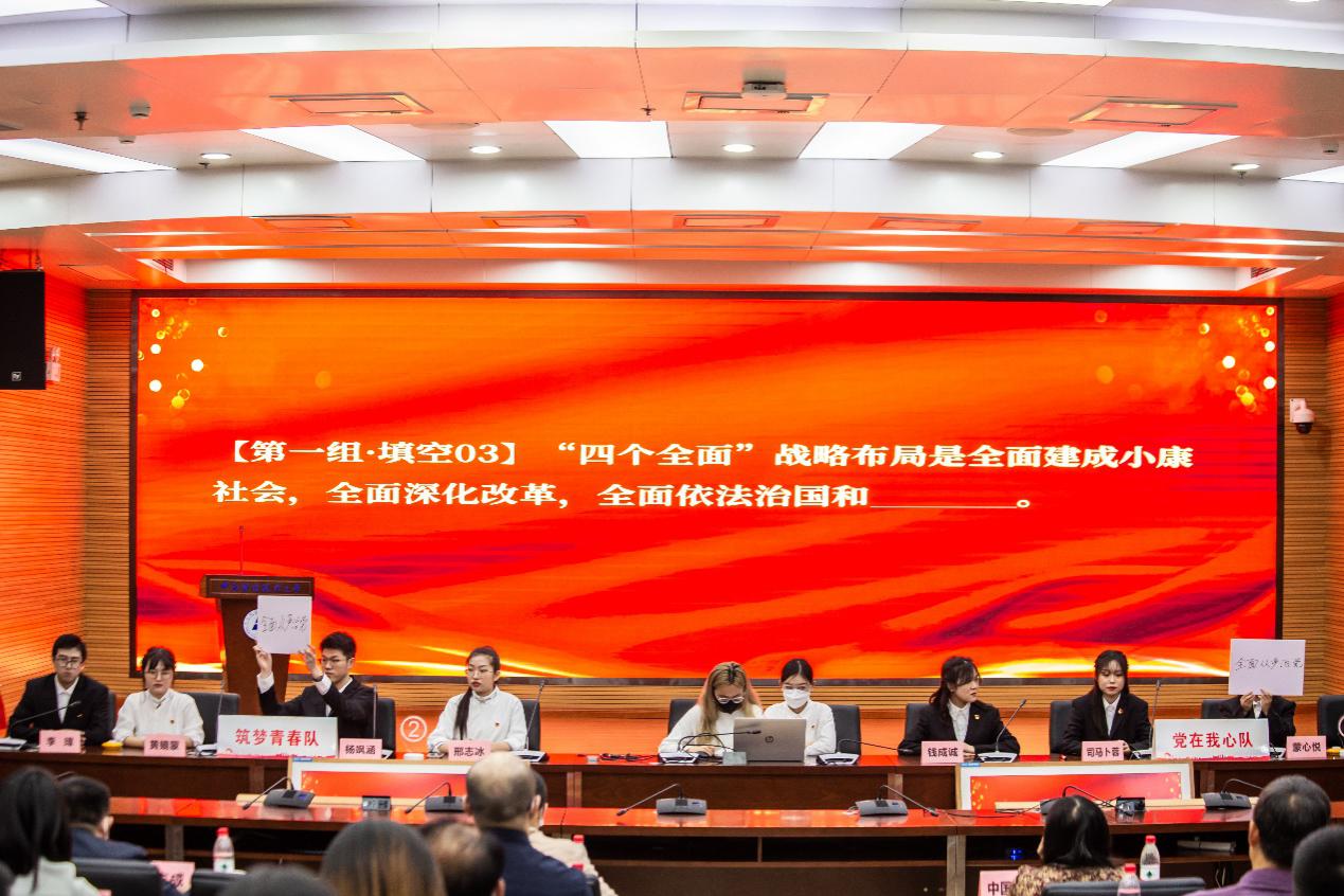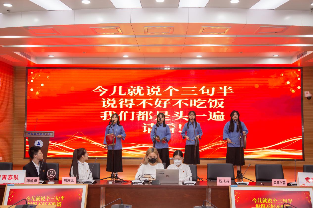 新闻网讯(通讯员 畅雅莉 徐乐 陈家佳) “纵有千古,横有八荒。前途似海,来日方长。生生不息,奋斗不止。功成不必在我,功成必定有我!”声音回响,这是“党建知识都答”队正声情并茂地进行风采展示。为进一步加强基层党组织建设,推进会计学院党建“标杆院系”长效化工作机制建设,构筑高质量党建引领高质量发展新高地,激励和促进广大师生加强理论学习,埋头苦干、勇毅前行,以实际行动迎接党的二十大胜利召开,2022年5月20日晚,会计学院在文澴楼一楼同声传译会议中心举办“青春献礼二十大,强国有我新征程”第九届党建知识竞赛。
