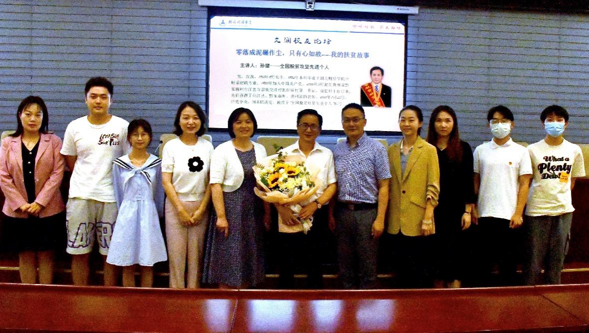 新闻网讯(通讯员 韩睿子 丁世昱 摄影 唐皓)为讲好党史故事,厚植爱党、爱国情怀,教育引导广大青年学生扎根基层,走向人民最需要的地方,5月25日,财政税务学院首期“峥嵘财税 薪火相传”文澜校友论坛在中原楼7楼会议室举行。此次论坛有幸邀请到了我院78级校友、全国脱贫攻坚先进个人孙健作为主讲嘉宾。活动由财政税务学院党委书记袁桂君主持,参加本次论坛的有校友工作与社会合作部部长笪宁、财政税务学院全体辅导员及学生代表。