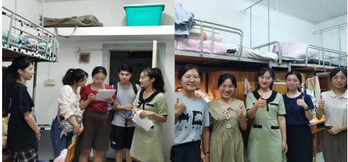 晚上,新生辅导员王晓丹和研会成员前往环湖宿舍看望新生,了解新生需求和入住情况,就兴趣爱好、课程选择等话题展开亲切交谈,叮嘱各寝室同学加强安全防范意识,做好疫情防护,并勉励新生尽快适应新环境,热情且自信地迎接研究生阶段的学习和生活。