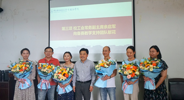 会上,刘仁山代表学校向省青教赛一等奖获奖者张琦和备赛教学团队表示热烈祝贺。他以“总结经验、凝心聚气、振奋人心、百尺竿头”为关键词,表达了对学院下一阶段工作的三点期许。一是深入总结,精于提炼。学院要认真总结各种教学成果经验,创新教学理念、方式,打造“金课”“金师”“金专业”,助力学校新文科教育发展;健全完善教学竞赛奖励机制,激励更多老师投入教书育人、立德树人工作;结合学院发展战略与规划,提炼形成学院特有的立德树人文化。二是凝心聚气,振奋人心。学院师生要增强学科自信,充分发挥外语在人文社科大学建设中的重要作用,不断提升大学生人文素养、国际视野、构建人类命运共同体的能力。三是百尺竿头,更进一步。学院要以此为契机,实现专业建设、人才培养、科学研究等方面长足发展,为学校、为外语学科发展谱写更加美好的篇章。
