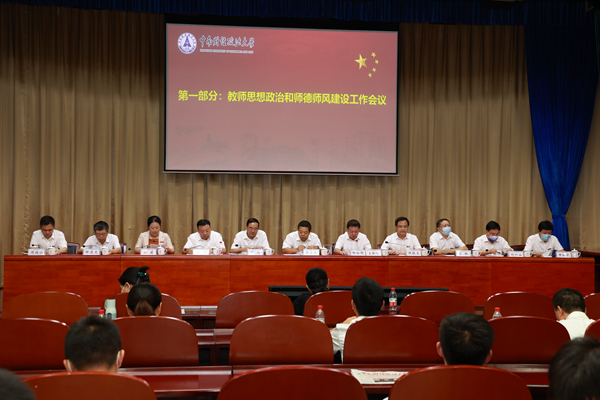 教师思想政治和师德师风建设工作会议由党委副书记、校长杨灿明主持,党委书记栾永玉作教师思政和师德师风建设工作报告。