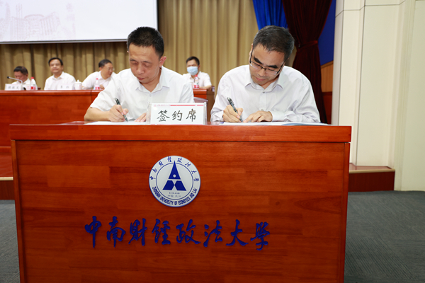 人才工作办公室主任龚强与湖北省人才工程特聘教授徐强胜教授签约