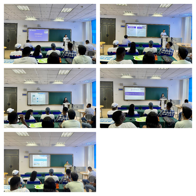 随后,对外汉语老师李木子,国际学生管理办公室李雄涛主任、辅导员李凡婕,国际学生招生与培养办公室甘甜主任、章曦之老师分别向国际学生宣讲了涉及学习、生活、防疫、签证、纪律、规章制度、活动等各个方面的信息。国际学生们纷纷表示感谢老师们的细心介绍,对即将到来的校园生活充满期待。