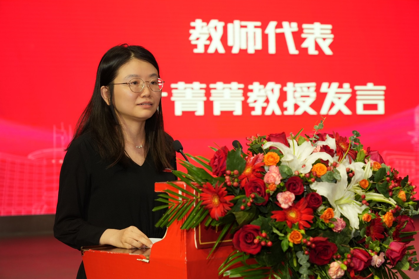 叶菁菁教授作为教师代表在典礼上发言,围绕个人海外求学、学术科研等经历,引导学生将奋斗的青春与祖国同频共振。她认为,家是国的基础,国是家的延伸,在中国人的精神谱系里,国家与家庭、社会与个人,永远都是密不可分的整体。希望同学们认真学习财税知识,在学习新知识的过程中感受国家与个人的密切联系,祝福大家在大学新的旅程中有所收获,成为想要成为的自己。