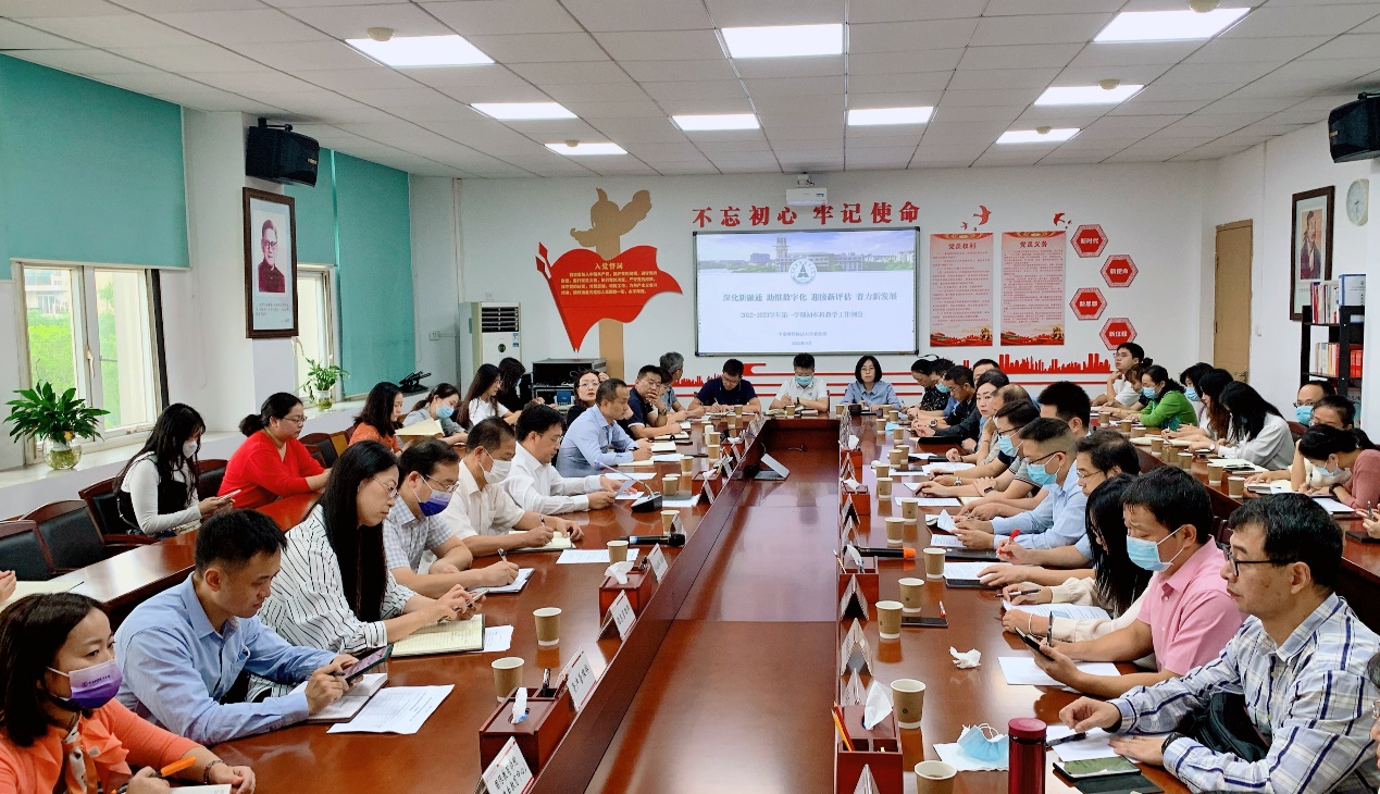 新闻网讯(通讯员 王颖 摄影 皮欣怡)9月22日上午,2022-2023学年第一学期初本科教学工作例会在文澜楼405会议室召开,会议以“深化新融通、助推数字化、迎接新评估、着力新发展”为主题。会议由校党委常委、副校长刘仁山主持,相关职能部门负责人、各教学单位教学副院长及教学秘书、教务部负责人和科室负责人参加会议。