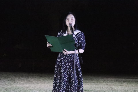 开场舞蹈让现场观众迅速融入了晚会欢快的气氛中。在高悬的灯光下,青春和热情融于舞蹈动作之中,在广阔的草地上,跃动与张扬撞击出火花,演员们的每一次律动,彰显的是青年一代的激情,譬如秋日朝阳,绚烂而高远。团体舞蹈、吉他弹唱、歌曲串烧一个个节目轮番上演,将晚会推向了高潮。今夜月光如华,时光追逐着来到最后一首歌曲《回不去的夏天》,徐明哲唱着:“有些问题不需要答案”,“别怕遥远的以后”,鼓舞着在场的每一位新生。挥舞的双手、跳动的音符,场上气氛热烈,仿佛回到了那个夏天。