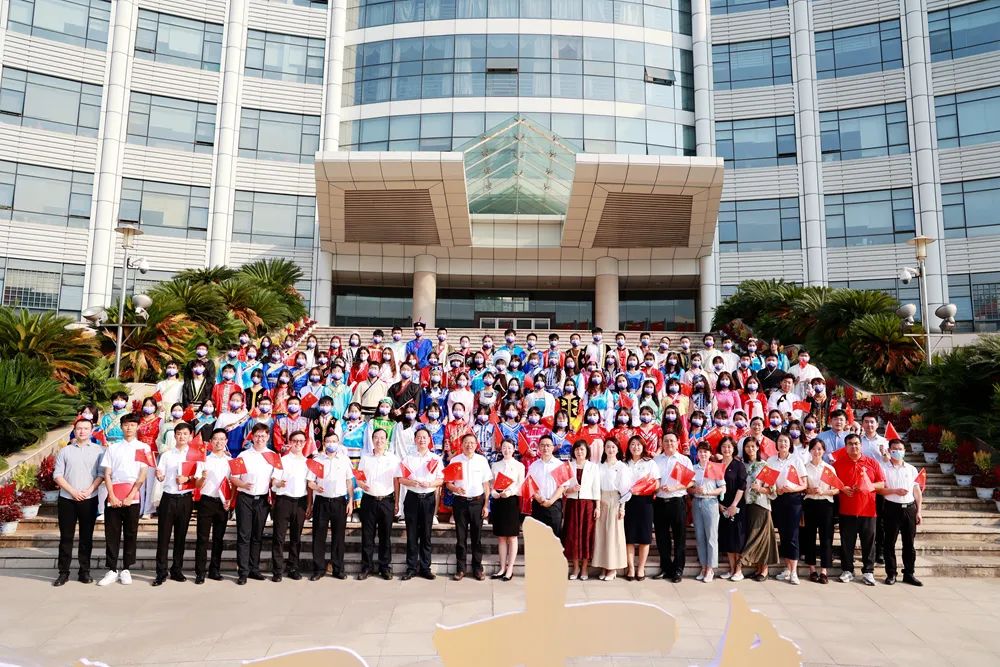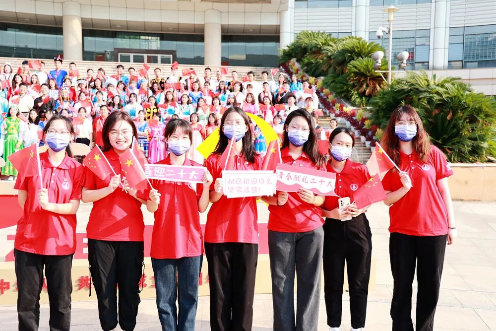 “五星红旗迎风飘扬,胜利歌声多么嘹亮,歌唱我们亲爱的祖国,从今走向繁荣富强。”身着绚丽服装的各民族学生围成一圈,载歌载舞。全体师生热情洋溢挥动手中的国旗,齐唱《歌唱祖国》。伴随“请党放心,强国有我”的青春誓言,活动渐渐进入了尾声。