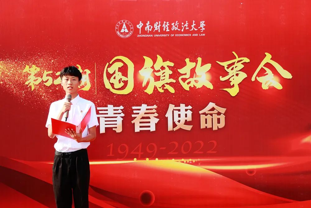 覃红在致辞中表示,73年前,第一面五星红旗在中国大地上升起,无数仁人志士用鲜血染红旗帜,谱写了中华民族伟大进程中的崭新篇章。70多年来,中南大筚路蓝缕、矢志不渝,始终与党和国家的发展同向同行、同频共振,带领一代又一代中南大人扎根中国大地,传承红色基因,书写了一部创业奋斗史、一部耕耘收获史和一部精神传承史。站在过去与未来的交汇点上,中南大人肩负光荣使命,在立德树人的阵地、教学科研的一线、创新创业的风口、脱贫攻坚的战场,以奋进的姿态发出“请党放心,强国有我”的铮铮誓言。他勉励学生做坚如磐石、挺拔如松、利泽万物的新时代青年,接好历史的接力棒,跑出新时代的加速度。希望同学们坚定信念、勤练本领,以昂扬的姿态迎接党的二十大胜利召开,为实现中华民族伟大复兴的中国梦再建新功!