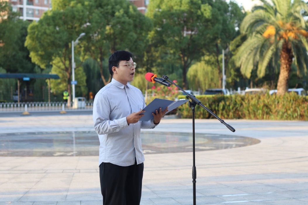 2022级硕士研究生王晨进行国旗下演讲。他首先从“乐观精神、敢为精神和克难精神”三个方面,为大家介绍了如何更好地实现自我价值与报国理想。其次,他还结合自身实习工作经历,向大家分享了“排除万难后,获得成功的那份喜悦”。最后,王晨用“坚定理想信念,凝聚精神力量,创造属于我们这一代人的业绩与荣光”与大家共勉。