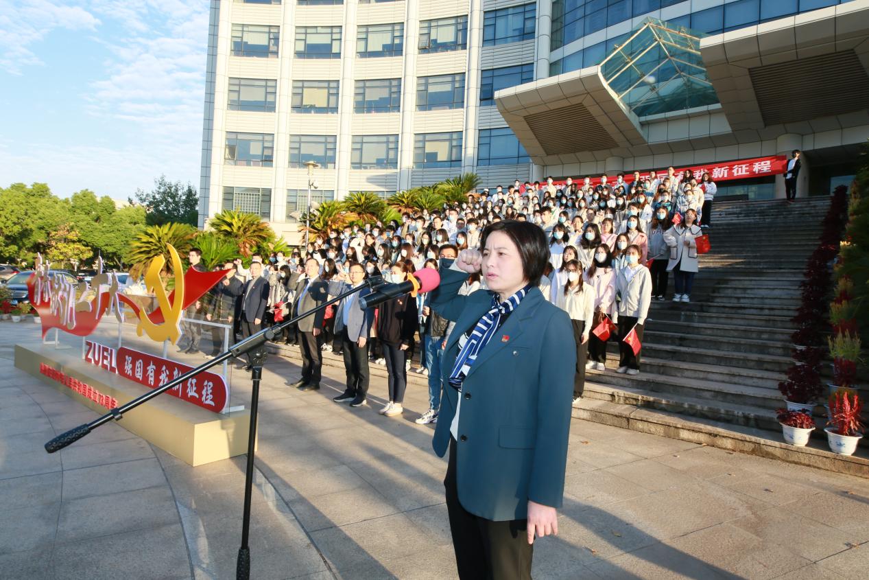 新闻网讯(学生通讯员 汤智涵 摄影 马欣语)为进一步加强爱国主义教育,弘扬革命传统,传承红色基因,10月10日上午,财政税务学院举办了以“青春献礼二十大,强国有我新征程”为主题的升旗仪式活动。校党委研究生工作部部长肖翠祥,党委学生工作部部长余小朋,财政税务学院党委书记袁桂君、副院长薛钢、魏福成,学院党政办、学办全体老师,以及来自本科、研究生各年级的党员同学、入党积极分子代表共同参与升旗仪式。财政税务学院党委副书记吴兴华主持本次仪式。