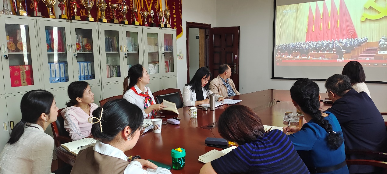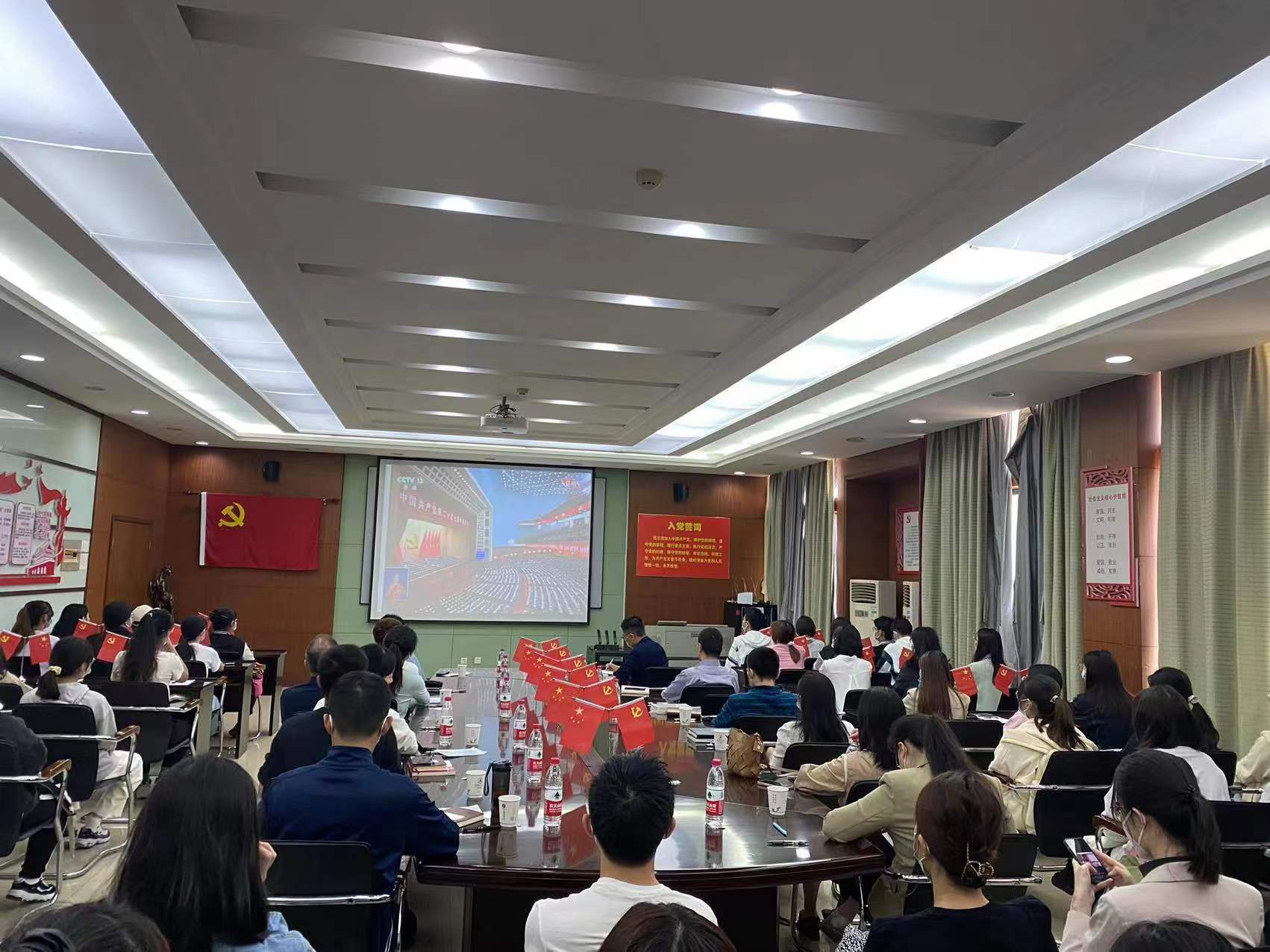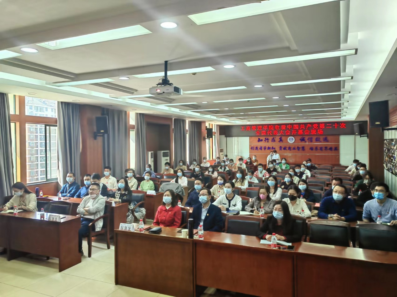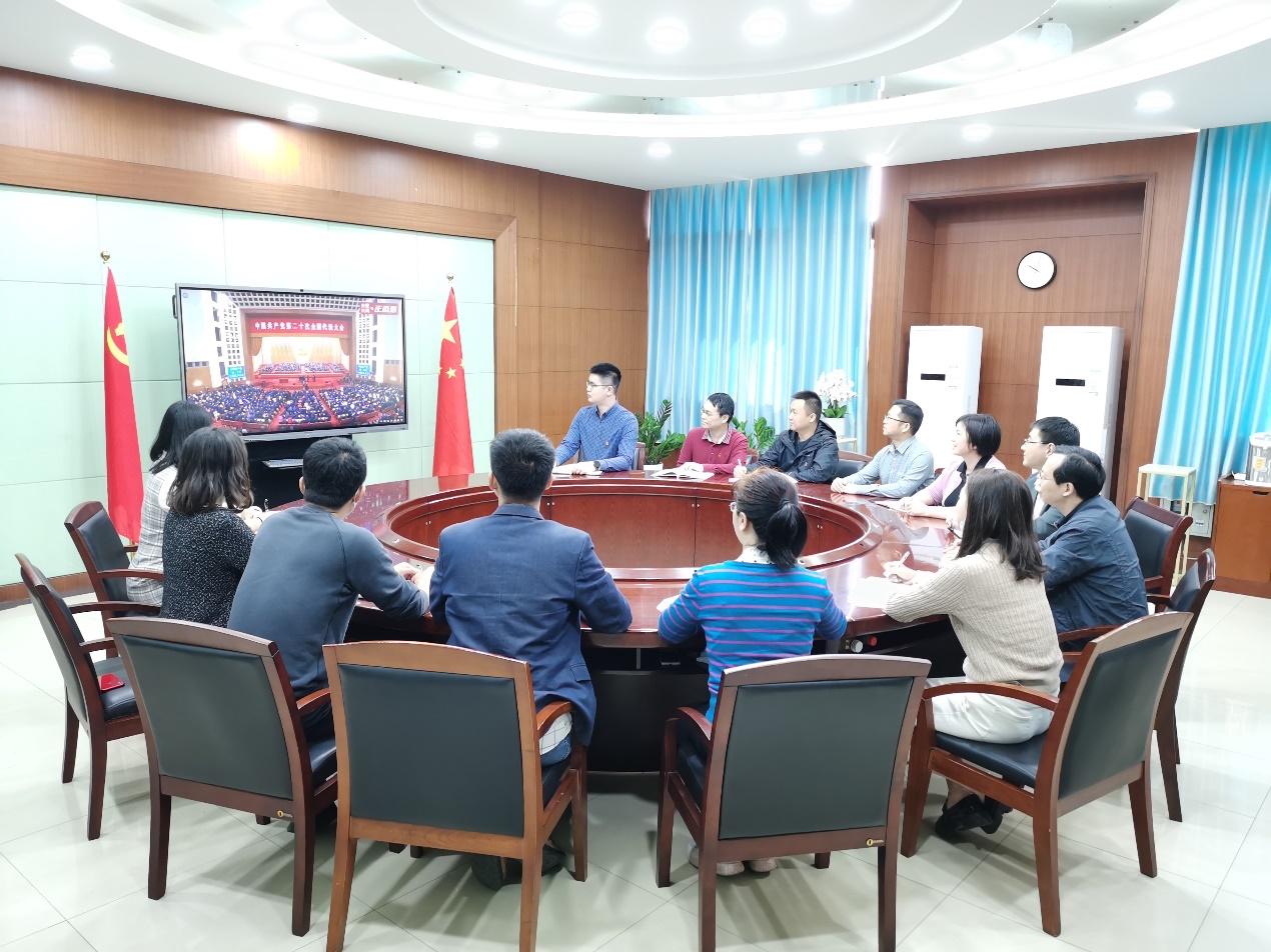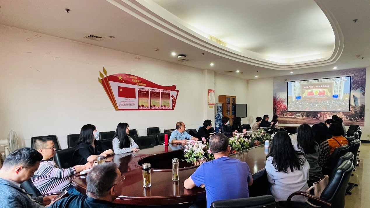 校党委常委、民主党派校领导,党务部门代表,学校各民主党派代表,统战团体代表,学校老年协会代表及师生代表在文澴楼南附楼一楼同声传译国际会议室集中收看大会盛况。