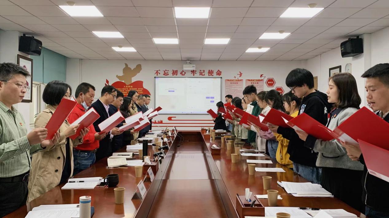 活动在慷慨激昂的入党宣誓词中开始。全体党员面对鲜红的党旗,高举右拳,重温入党誓词。党员们个个慷慨激昂,宣誓铿锵有力,初心坚定如磐。