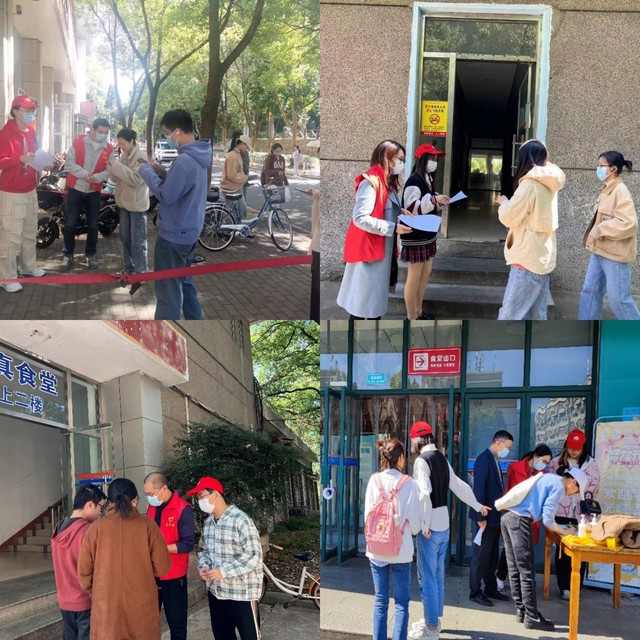今年10月上旬,接到疫情防控工作任务后,机关党委再次在一天内组织教职工志愿者24名,参与学校南湖校区核酸检测抽查工作,在7个食堂入口处负责检查进入食堂进餐人员的健康码和核酸检测证明,维持队伍秩序,登记备案核酸检测证明超时或灰码等异常状况人员。