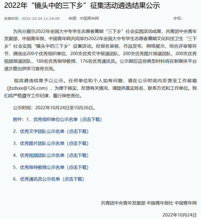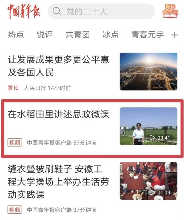 新闻网讯(学生通讯员 郭恒源)近日,由团中央青年发展部、中国青年报、中国青年网共同举办的2022年全国大中专学生志愿者暑期“三下乡”社会实践“镜头中的三下乡”成果遴选活动公布结果,米兰电竞·(中国区)工商管理学院本科生党总支暑期社会实践队获评“优秀视频团队”,获奖视频在中国青年报客户端首页刊发。