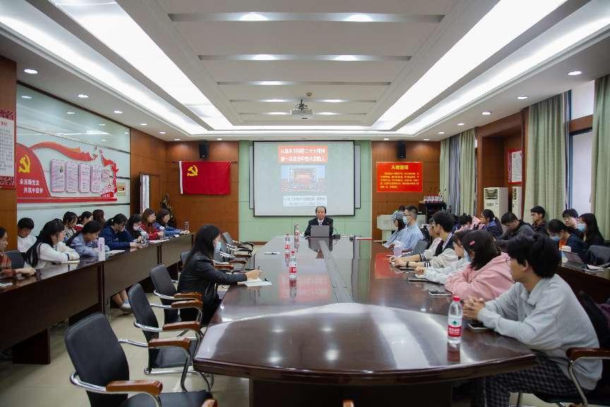 新闻网讯(通讯员 畅雅莉) 为深入学习宣传贯彻党的二十大精神,进一步发挥主题班会的育人作用,10月28日,会计学院在文泉楼401会议室举办“奋进新征程 建功新时代”主题班会。主题班会由院党委副书记胡桂锬主持。