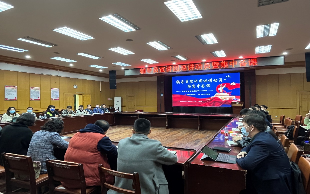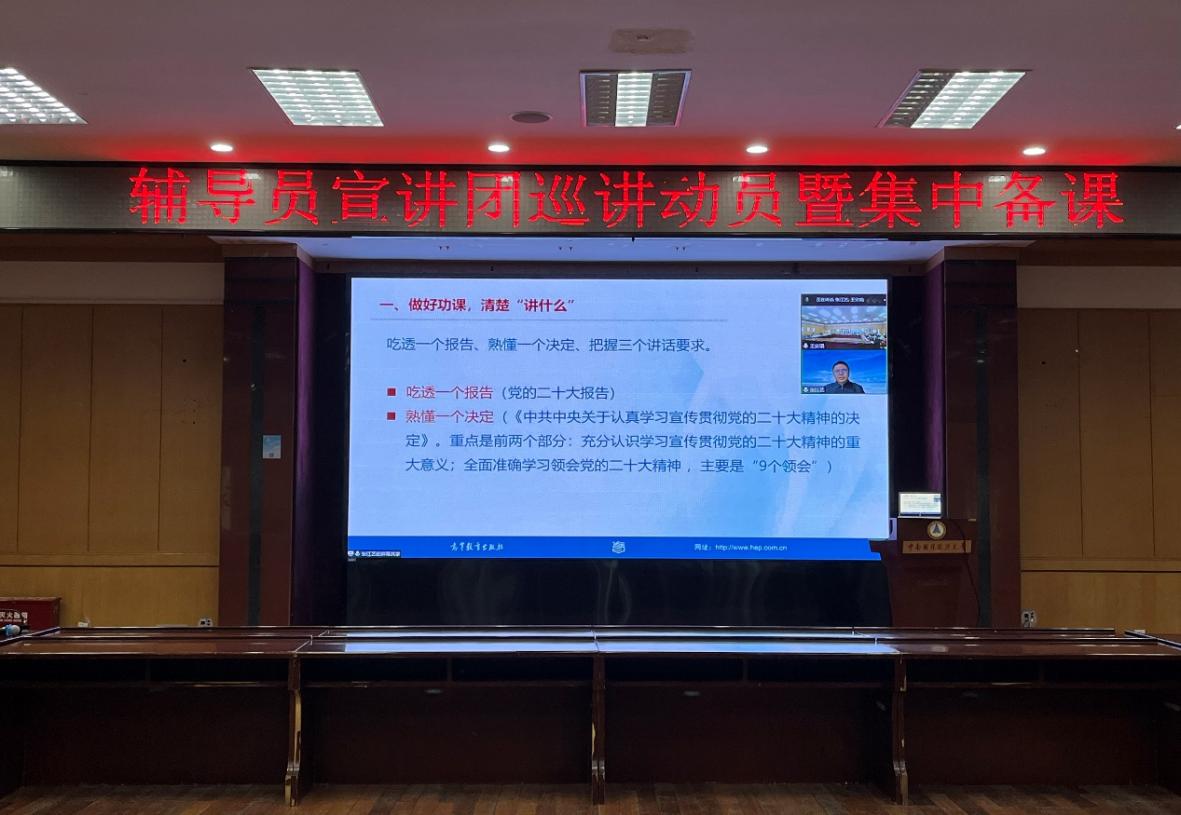 新闻网讯(通讯员 任珊曼 摄影 王安琪)为深入学习宣传贯彻党的二十大精神,11月24日上午,党委学生工作部举办辅导员宣讲团巡讲动员暨集中备课研讨。全国高校思想政治工作网、教育部中国大学生在线常务副主任张江艺,马克思主义学院副教授、理论热点面对面宣讲团成员尹倩以及辅导员宣讲团全体成员参加。研讨会由党委学生工作部副部长葛明主持。