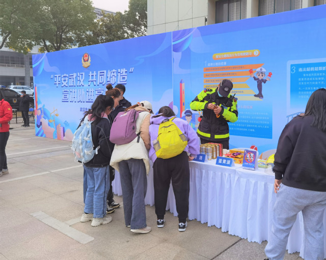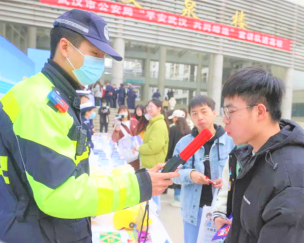 随后,来自文保、交通、禁毒、特警等多个警种和东湖新技术开发区分局的民警,与我校大学生文艺团队共同登台,为近千名大学生带来生动有趣的警务技能展示和丰富多彩的安全知识宣传。在文泉楼广场,武汉公安还为我校师生提供了现场办理护照、电动自行车行驶证等便民服务。