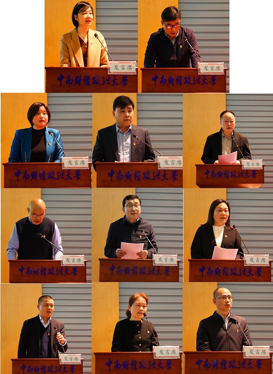 马克思主义学院党委、经济学院党委、财政税务学院党委、金融学院党委、法学院党委、外国语学院党委、新闻与文化传播学院党委、文澜学院党委、首义校区党委、离退休人员党委、医院党委等11家单位党委书记结合PPT图文展示,依次作现场述职,其他13位二级党委书记作书面述职。侯振发、杨灿明、覃红、姚莉、刘仁山、申祖武等党员校领导按照分工分别作了集中点评。会上还发放了《述职评议测评表》,与会人员按要求作了测评。