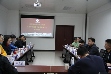 傅小勇对武汉理工大学体育学院一行的到访表示热烈欢迎,他表示,两校作为长期战略合作伙伴,应进一步深入了解、加强联络,武汉理工大学体育学院体育基础课程设置等方面值得我校思考学习,未来可以在体育教学科研上加强交流、互学互鉴、共促发展。