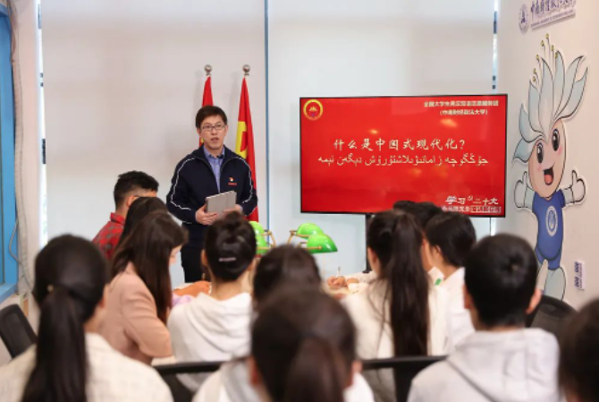 尼加提为新时代丝路青年成长社的学生宣讲党的二十大精神