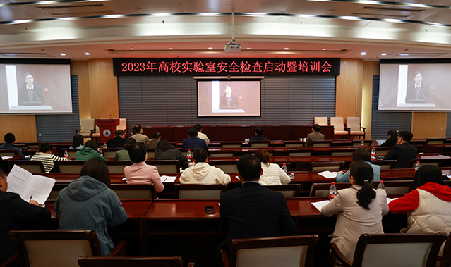 新闻网讯(通讯员 黄志朗 摄影 李赢)4月7日,教育部组织召开2023年高校实验室安全检查启动暨培训会,校党委常委、副校长刘仁山,保卫部、教务部、教学督导与评估中心以及相关学院负责人和实验室管理人员线上参加培训。