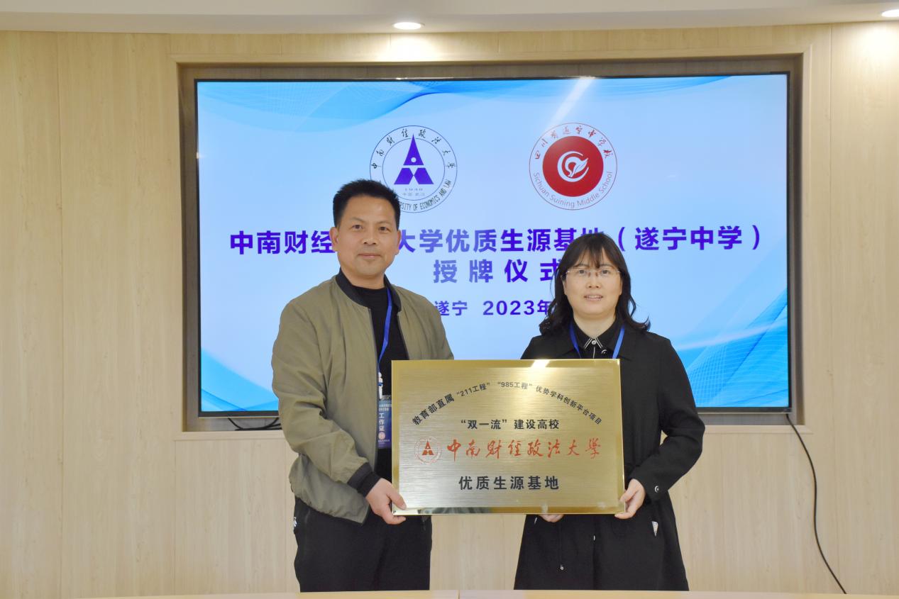 金兰中学校长杨兰萍介绍了学校概况和办学特色和教学成绩,王海军围绕学校的历史沿革、学科特色、遂宁中学学子在中南大的学习生活等方面进行了重点介绍,并向遂宁中学授予“优质生源基地”牌,希望双方能进一步加深高校高中的联系与合作。