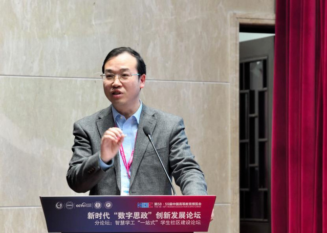 余小朋在报告中强调,我校紧密围绕“一站式服务”“一键式办理”“一体化管理”的信息化建设理念,依托学生网上事务大厅,分步骤、分阶段实现学生工作全方位全流程信息化。同时,作为“一站式”学生社区建设试点高校,探索“1+1+N”学生社区建设模式,线下聚焦于交流平台和功能性平台创建,打造“五型”驿站,线上依托现有学生工作信息化建设成果构建“一站式”学生社区综合线上平台,推进线上线下双融合,形成多维度育人工作格局,实现从信息化向智慧学工稳步迈进,不断提升“数字思政”育人实效。