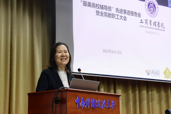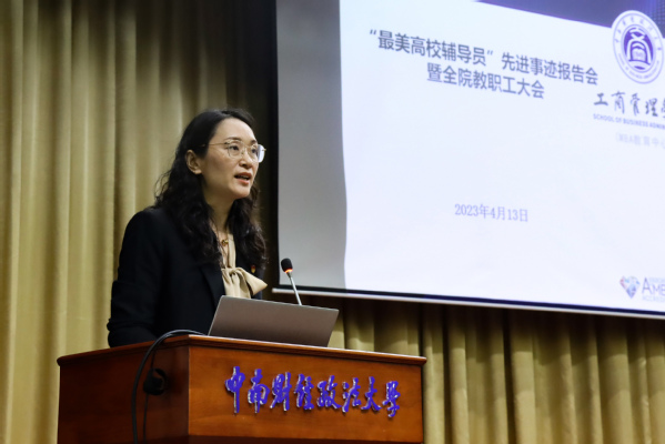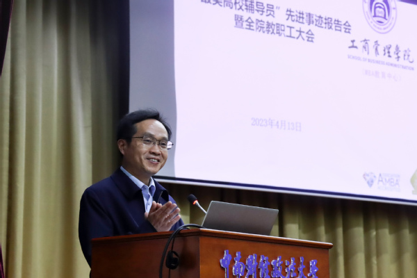 新闻网讯(通讯员 刘振兴 摄影 梁桂华)青春为祖国,挺膺共担当。4月13日下午,工商管理学院在文泉报告厅组织召开全国“最美高校辅导员”先进事迹报告会,工商管理学院党委书记王华路,院长吴海涛,副院长郑家喜、费显政、胡川,院党委副书记李芳、朱艳平出席活动,2022年“最美高校辅导员”获得者、工商管理学院本科生辅导员尼加提·艾买提报告先进事迹,工商管理学院全体教职工、各年级学生代表近400人共同参会,报告会由李芳主持。