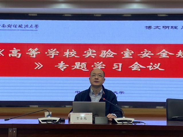 贺占魁以“《高等学校实验室安全规范》理解与体会”为主题,详细介绍了《高等学校实验室安全规范》出台的背景,对其中相关规定作了详细解读,最后还与参会人员分享了华中师范大学在实验室安全管理工作中的管理经验和工作举措,为提升优化我校实验室安全管理工作提供了新思路。