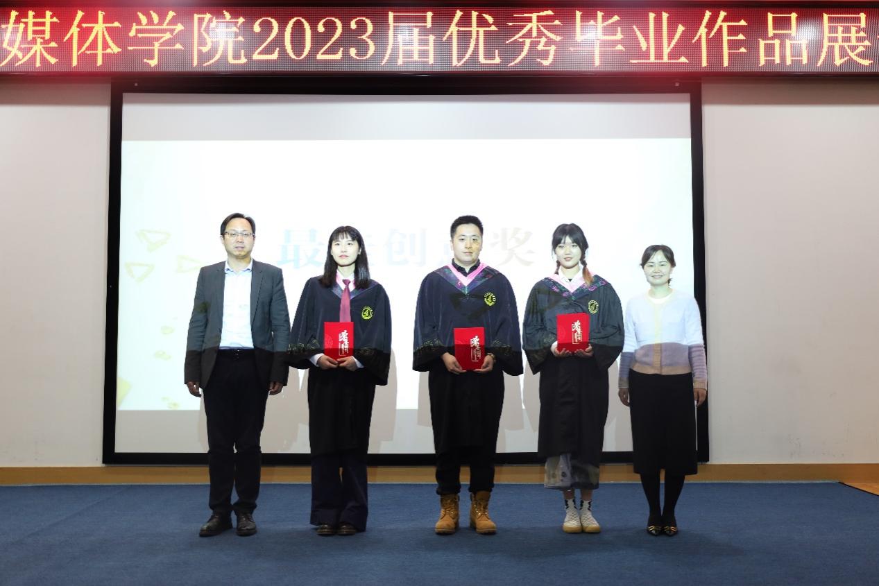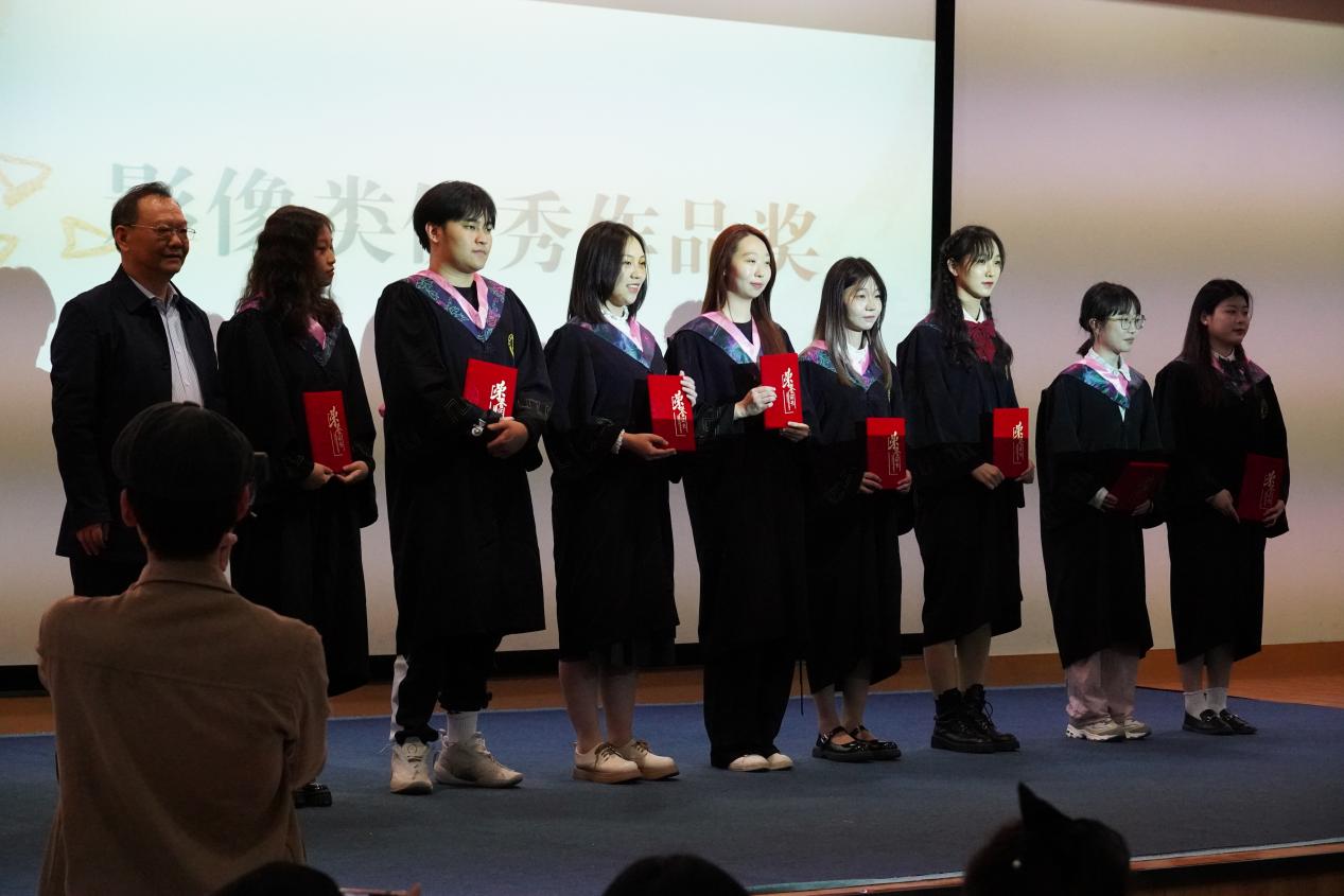 进入颁奖环节,同学们带着期待和喜悦,揭开了本次优秀毕业作品展的获奖名单,包括动漫类优秀作品奖、影像类优秀作品奖、最佳视觉效果奖、最佳创意奖、最佳影片奖5项奖项,共22部获奖作品。