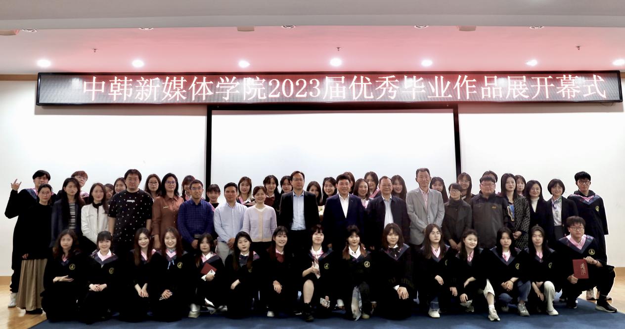 11点,董玉芝宣布本次优秀毕业作品展开幕式圆满落幕,并祝愿2023届中韩学子直挂云帆,长风破浪,志存高远,不负芳华。之后全体师生合影留恋。