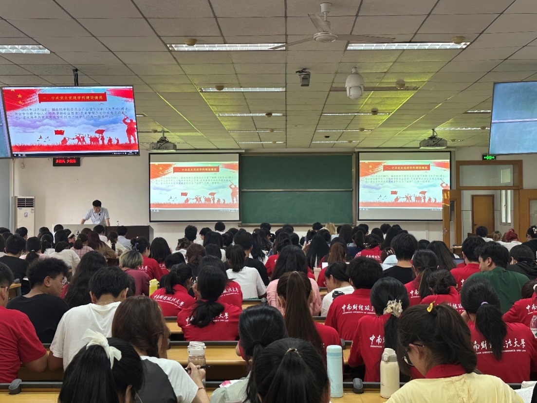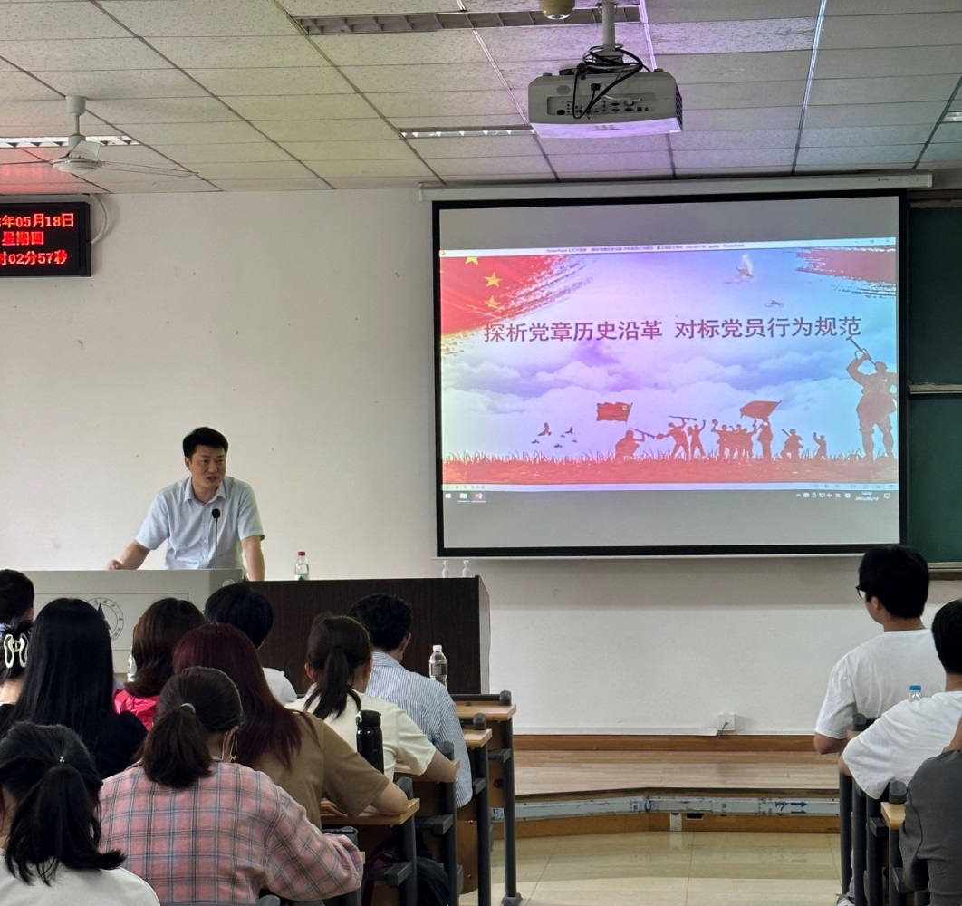 新闻网讯(通讯员 何谨 秦敏尔 陈姿言 摄影 陈姿言)5月18日下午,首义校区分党校2023年春季入党积极分子培训班第四次党课在文润楼303教室顺利进行。本次党课由党校教务长兼党委组织部副部长向前讲授,主题为“探析党章历史沿革 对标党员行为规范”。首义校区近300名学员到场学习,党课由外国语学院辅导员刘轩主持。